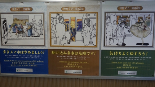 Tokio ist sehr darum bemüht, seine Bewohner an ihre guten Manieren zu erinnern. Zu diesem Zweck ist die Stadt voller Plakate und Hinweisschilder, die meistens lustige Figuren beinhalten und uns Touristen nicht selten zum Schmunzeln bringen. Hier eine Auswahl (!) unserer Entdeckungen!
